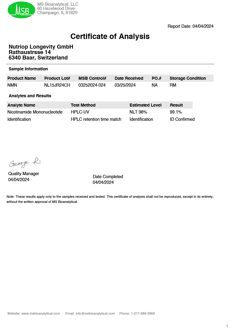• High-quality, pure Nicotinamide Mononucleotide (NMN)