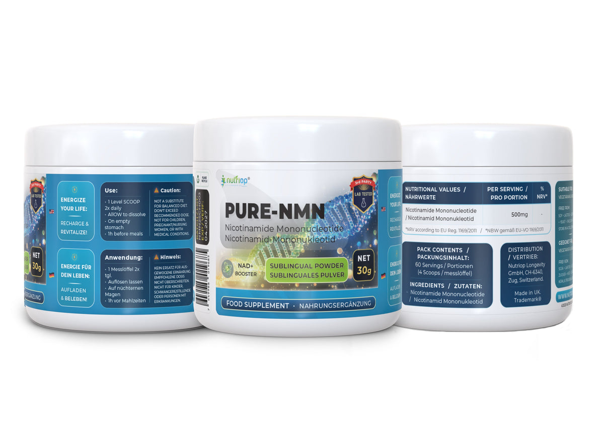 Unlock the secret to youthful energy and cellular rejuvenation with Nutriop Longevity’s Pure-NMN Sublingual Powder.
